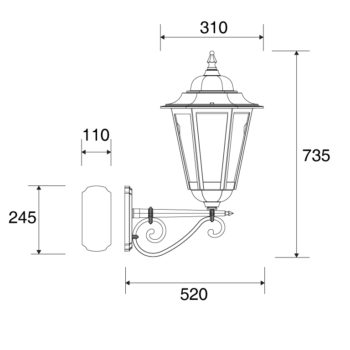 Braccio con ricciolo e lanterna quadrata piccola