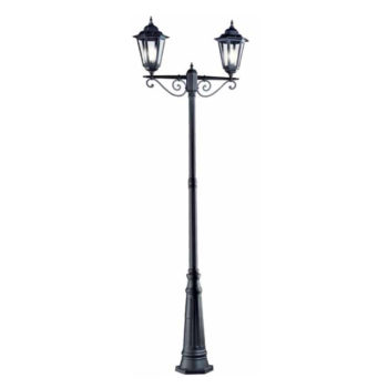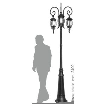 Palo con base in alluminio corpo centrale in acciaio e lanterne ottocentesche