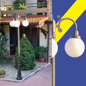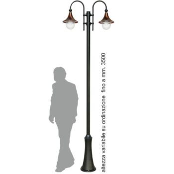 Palo con base in alluminio corpo centrale in acciaio e lanterne campana in rame